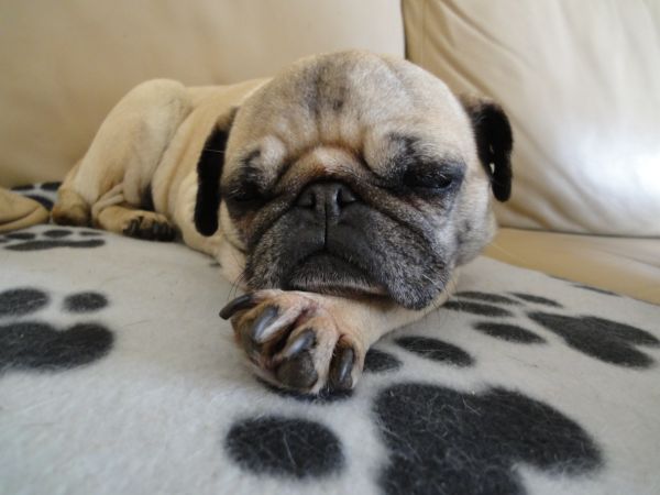 Serena, eine ehemalige Zuchthündin aus der Slowakei kam im Oktober 2011 im Alter von ca. 4 Jahren zu uns. Bereits nach einer Woche hatte sie Interessenten und ist wieder ausgezogen, sie war unser Turbopflegi und unsere erste Mopserfahrung und hat Mut auf noch mehr Mops gemacht ![]()