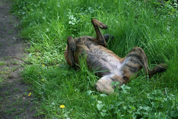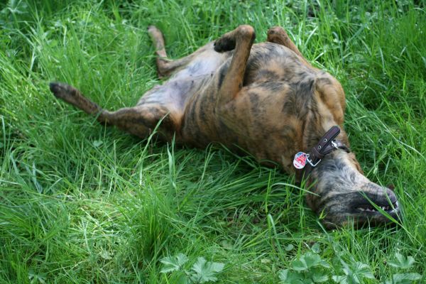 Loona war Gottseidank in den ganzen Jahren noch nie krank, neigt allerdings zu Übergewicht. Aber was soll sie denn auch machen? Die Leckerlies von Rentner Hoppi und Frau Nachbarin am Zaun sind einfach zu lecker und von Sport hält Loona nicht besonders viel. Am Rad läuft sie so schnell, wie sie bei mir auch am Fuß laufen muss; spielen findet sie toll, aber übertreiben muss man es ja nicht. Loona gehört da eher zu der Fraktion „Probier es mal mit Gemütlichkeit“ und das sieht mal halt ![]()