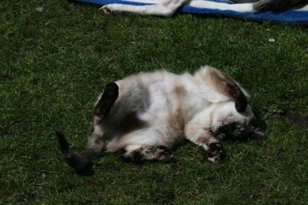 Heute ist Sally eine alte, tüttelige, schwerhörige Oma, die oftmals rastlos ihre Touren durch Haus und Garten dreht, dabei mehrmals einknickt, aber zufrieden ist. Im Rudel ist Sally immer unauffällig gewesen, versteht sich mit allen anderen Vierbeinern und hat in den ganzen Jahren nicht ein einziges Mal die Zähne gezeigt. Leider ist sie immer das Opfer, ob beim Spaziergang am Rhein, im Park, auch ein Pflegehund hat sie einmal gebissen …. sie musste schon mehrmals genäht werden. Anfangs habe ich gedacht, dass sie irgendwann Hunde hassen würde, aber dem ist nicht so, sie liebt alle Hunde, egal ob sie freundlich sind oder nicht. Auch mit dem Kater hat sie jahrelang eine innige Beziehung gehabt, sie war immer seine Mama, einfach nur schön. Aber …..