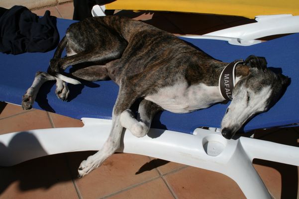 Maffi war eine ganz besondere Langnase, ein Traum von einem Galgo, ohne irgendwelche Macken und Tadel, ein Galgo, den man nicht mehr ziehen lässt und adoptiert. Das Pflegestellenfieber war ein weiteres Mal ausgebrochen. Maffi war IMMER nur lieb, verstand sich mit ALLEN und JEDEM, war eine ganz ruhige Fellnase, hat diese Ruhe auf mich übertragen. Jeder mochte sie, überall war sie gern gesehen. Auf den Spaziergängen konnte man sie immer ohne Leine laufen lassen, sogar in der Stadt an einer 4 spurigen Straße. Nie musste man sie ermahnen, sie war einfach nur traumhaft.